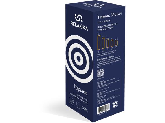 Классический термос Relaxika с высокими показателями удержания температуры напитка для походов, путешествий, спорта и ежедневного использования. Прочные двойные стенки из высококачественной нержавеющей стали 18/8 с вакуумной изоляцией гарантируют, что ваш напиток останется холодным в течение 22 часов и горячим до 16 часов. Этот материал не только прочен, но и гигиеничен, не выделяет никаких вредных для здоровья веществ. Ваши напитки сохраняет естественный вкус и не приобретут посторонний запах. Напиток остается холодным до 22 часов и горячим до 16 часов. - Узкое горлышко позволяет удерживать температуру максимально долго - Крышку термоса можно использовать как чашку - BPA Free. В пластмассах, используемых для производства термосов, отсутствует Бисфенол А - Надежная закручивающаяся пробка с силиконовым кольцом защищает от протекания и помогает удерживать температура - Высококачественная нержавеющая сталь 18/8 Рекомендации по уходу: Не рекомендуется использовать посудомоечные машины при мытье изделия. Мойте мягкими губками и жидкими моющими средствами. Не используйте сухие абразивные средства чтобы не поцарапать поверхность. После мытья необходимо протереть сухой салфеткой или полотенцем и оставить сушиться без крышки. Не для микроволновой печи или морозильной камеры. Чтобы предотвратить утечку, тщательно закройте верхнюю крышку.