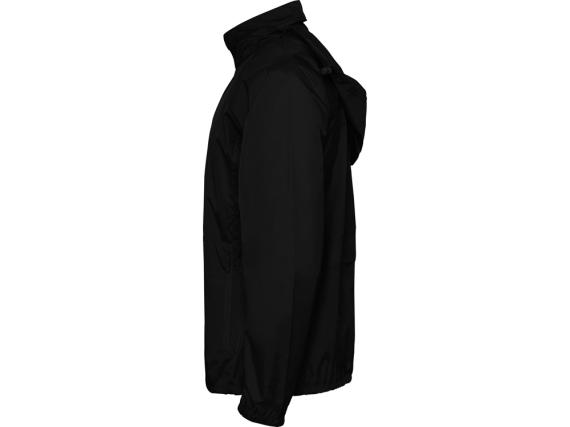 Ветровка из водонепроницаемой ткани на подкладке: *воротник с карманом для капюшоны *рукав реглан *карманы на молнии *центральная молния *карман на спинке для складывания изделия *капюшон с эластическим шнуром и пластиковыми регуляторами *дышащая ткань внутри горловины *дышащая ткань внутри кармана спинки